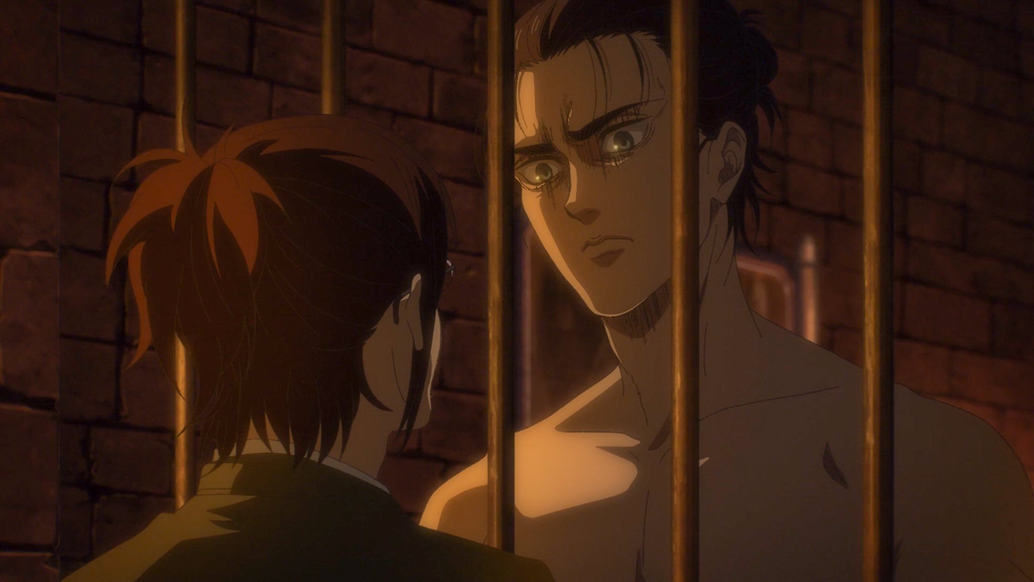Eren: Reiner, ben seninle aynıyım. Elbette, beni sinirlendiren kişiler vardı ama iyi kişiler de vardı. Denizin ötesinde, surların içinde, hepimiz aynıyız.